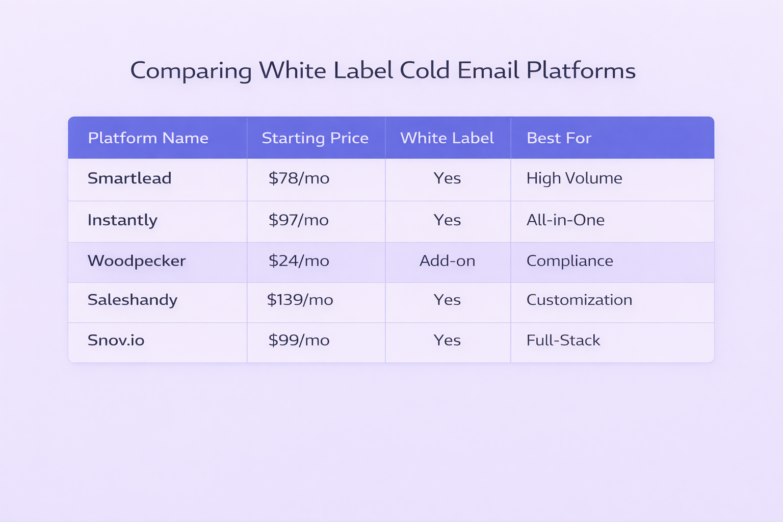 White labeling a cold email platform is a smart move for agencies that want to add an outreach service line without building software from scratch. The five platforms above each cover a different niche — from Smartlead’s raw scalability to Snov.io’s full-stack capabilities.
