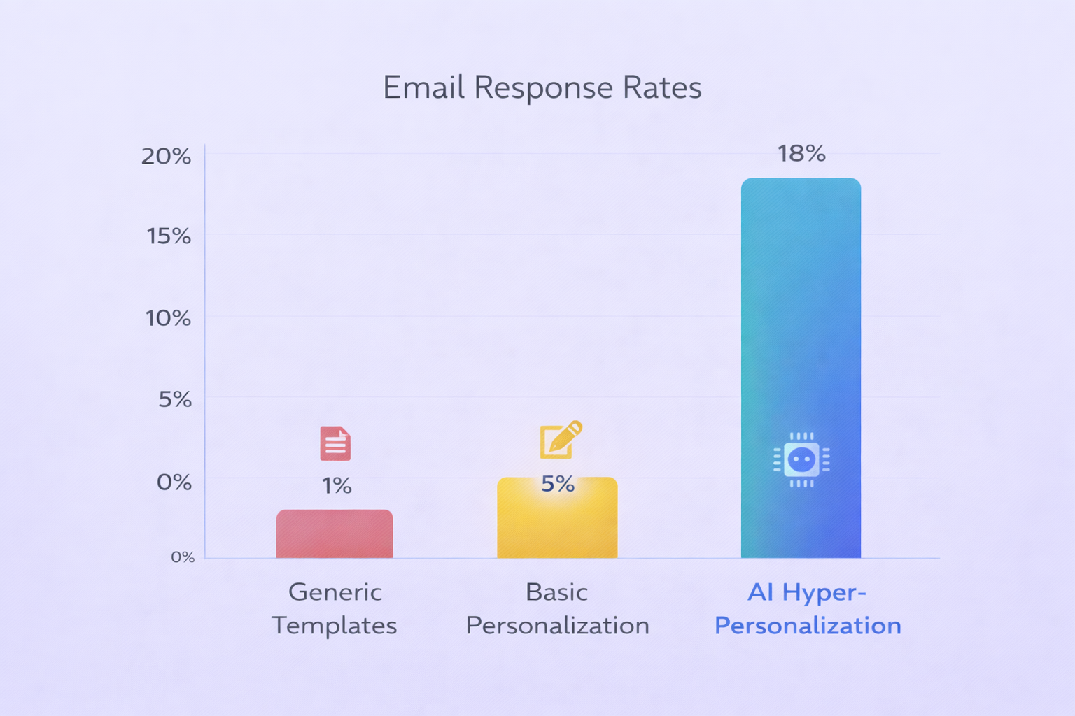 The stats prove it works. Generic templates get under 1% reply rates. AI-personalized outreach pushes this to 9-21% response rates. That’s not incremental improvement—that’s fundamentally different performance.