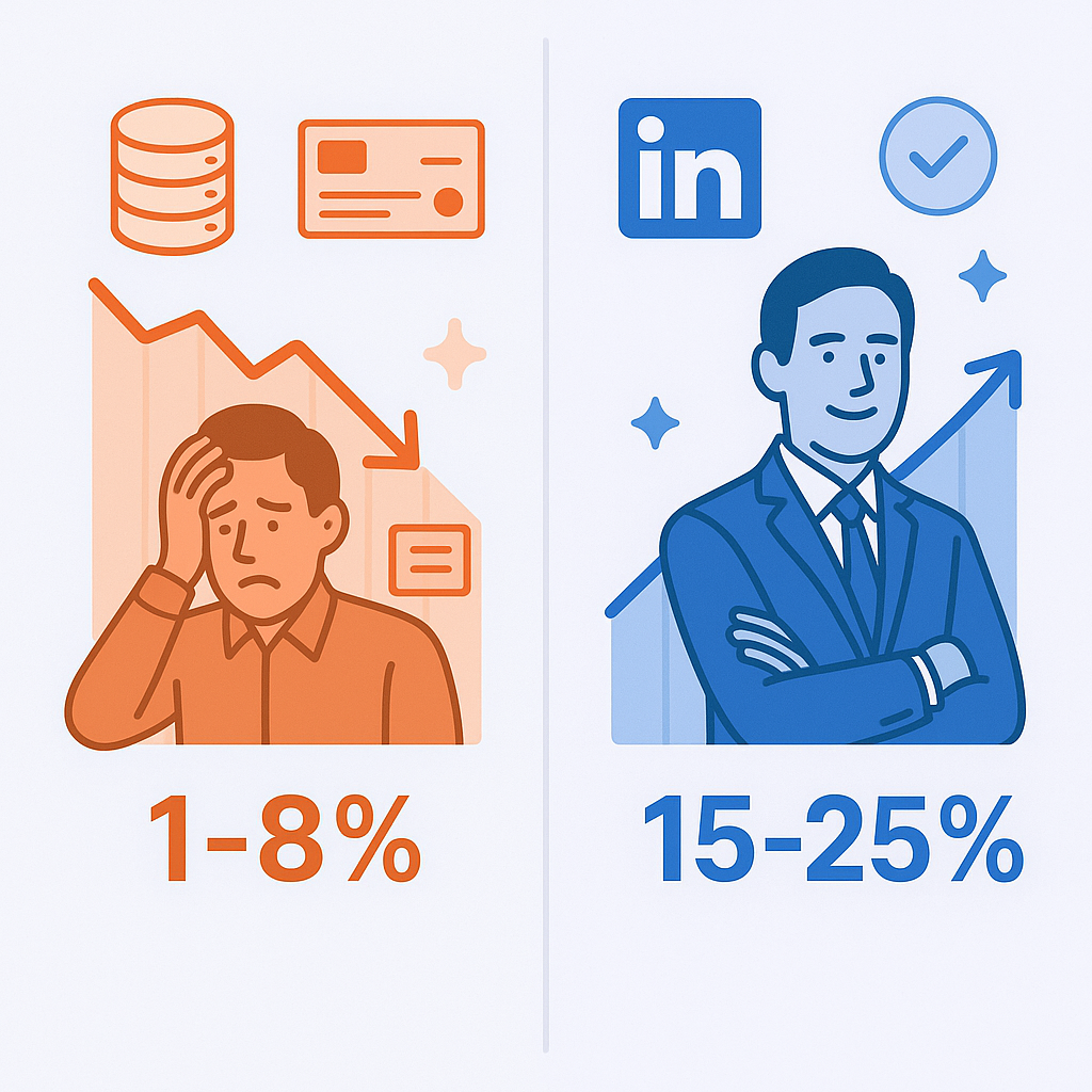 Reach decision-makers directly on LinkedIn with 15-25% response rates—no database needed
