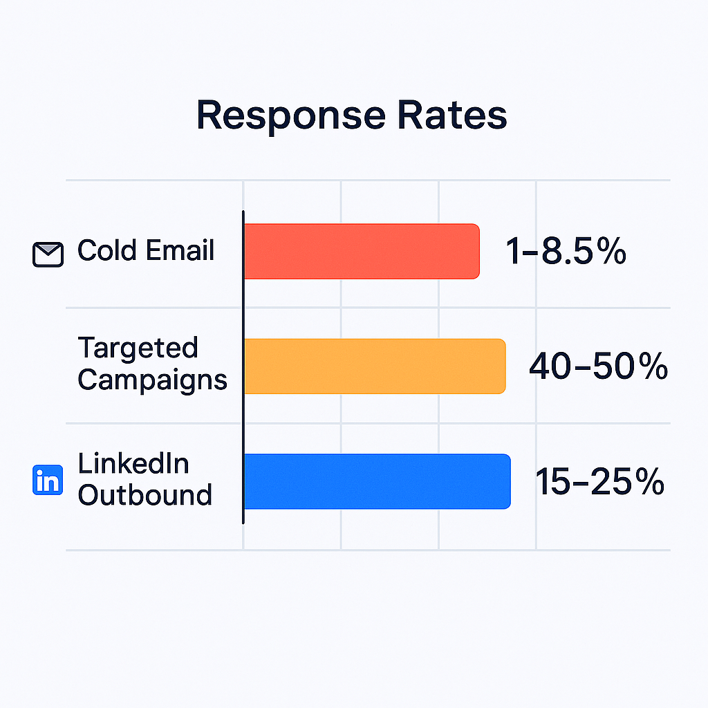 LinkedIn outbound delivers 15-25% response rates with complete targeting and campaign design
