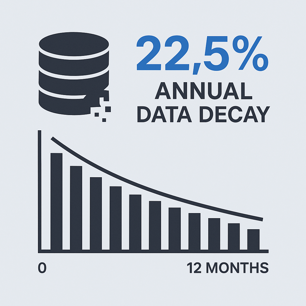 But here’s the problem: B2B data decays at 22.5% annually, meaning nearly a quarter of your database becomes useless every year. Poor data quality costs businesses an average of $12.9 million annually according to Gartner research.
