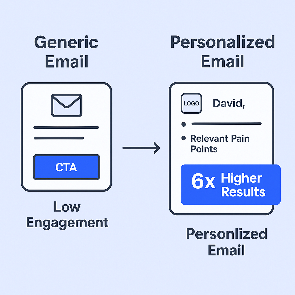 Generic emails die in the inbox. Personalized messages deliver 6x more transactions and boost open rates by 29%. But personalization goes far beyond inserting {FirstName} – it requires genuine research and relevance.