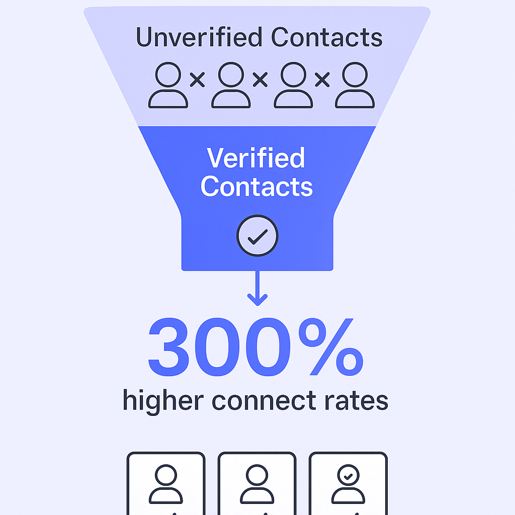 The numbers tell the story. Companies using verified, phone-verified mobile numbers see connect rates increase by 300%. Meanwhile, those relying on outdated databases waste countless hours on dead-end outreach.