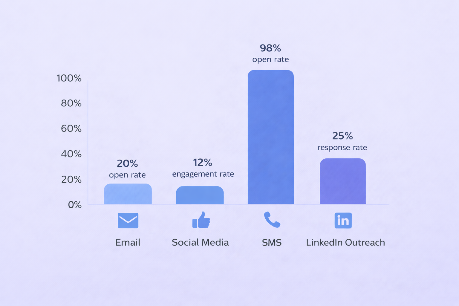 - SMS campaigns: Open rates 98%, response rates 45%