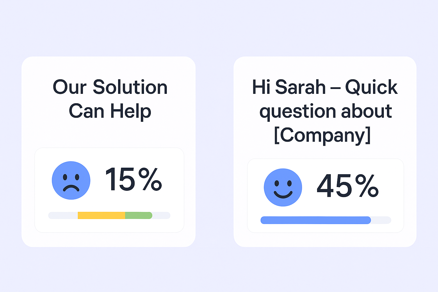 Why this matters: Your prospect is busy and scanning, not reading. Get to the point immediately. Every word must earn its place. If you can’t articulate your value proposition quickly and clearly, you’ve already lost their attention.