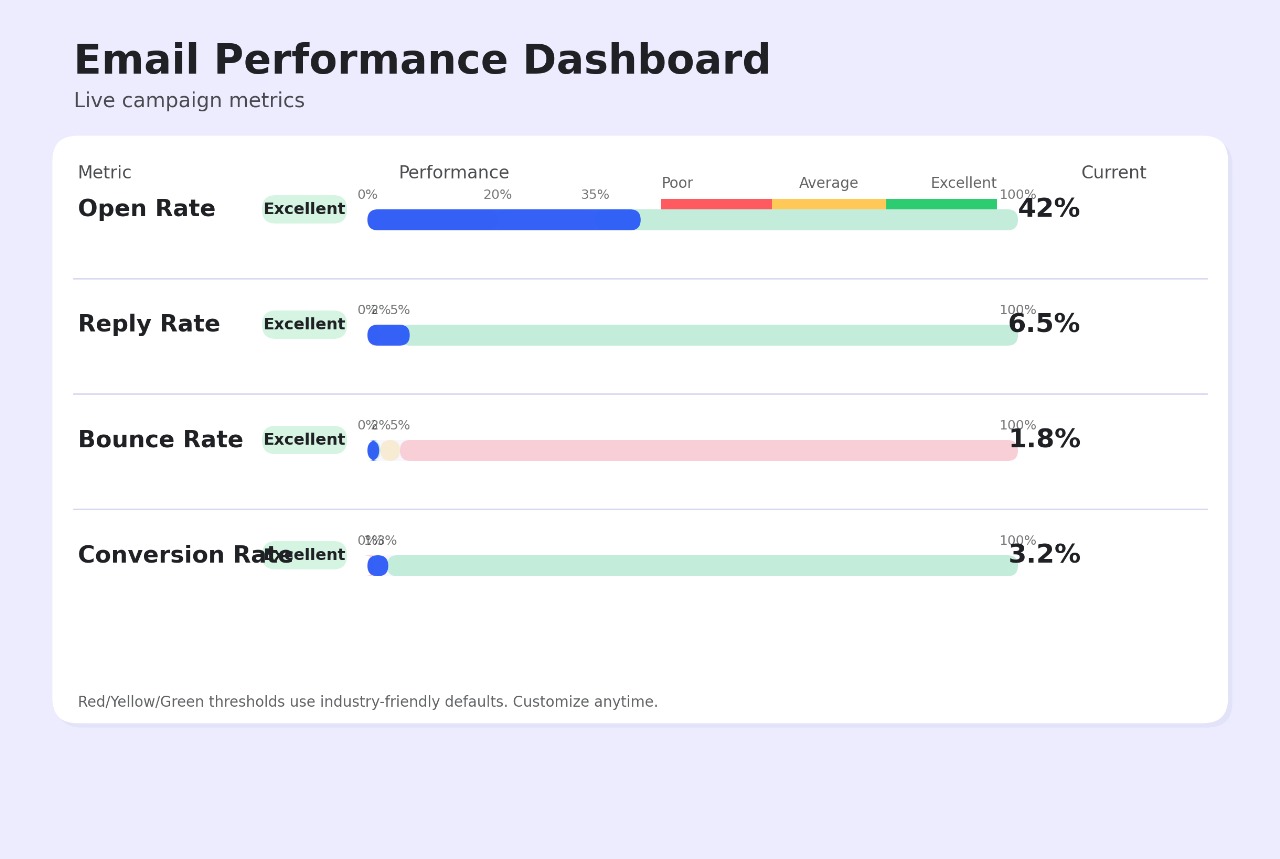 Open Rate | Below 15% | 15-25% | 30%+ |