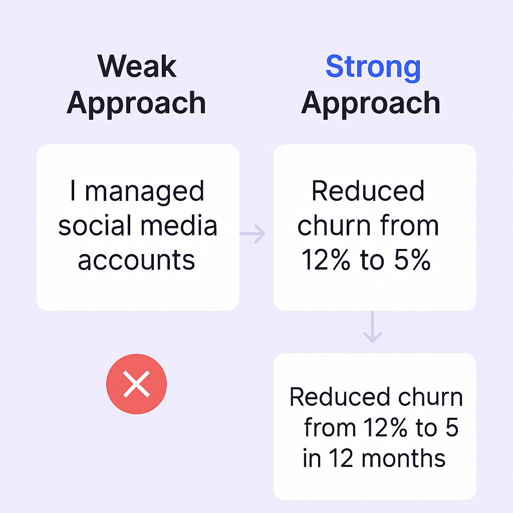 Strong approach: “I reduced customer churn from 12% to 5% in 12 months for a similar SaaS company.”
