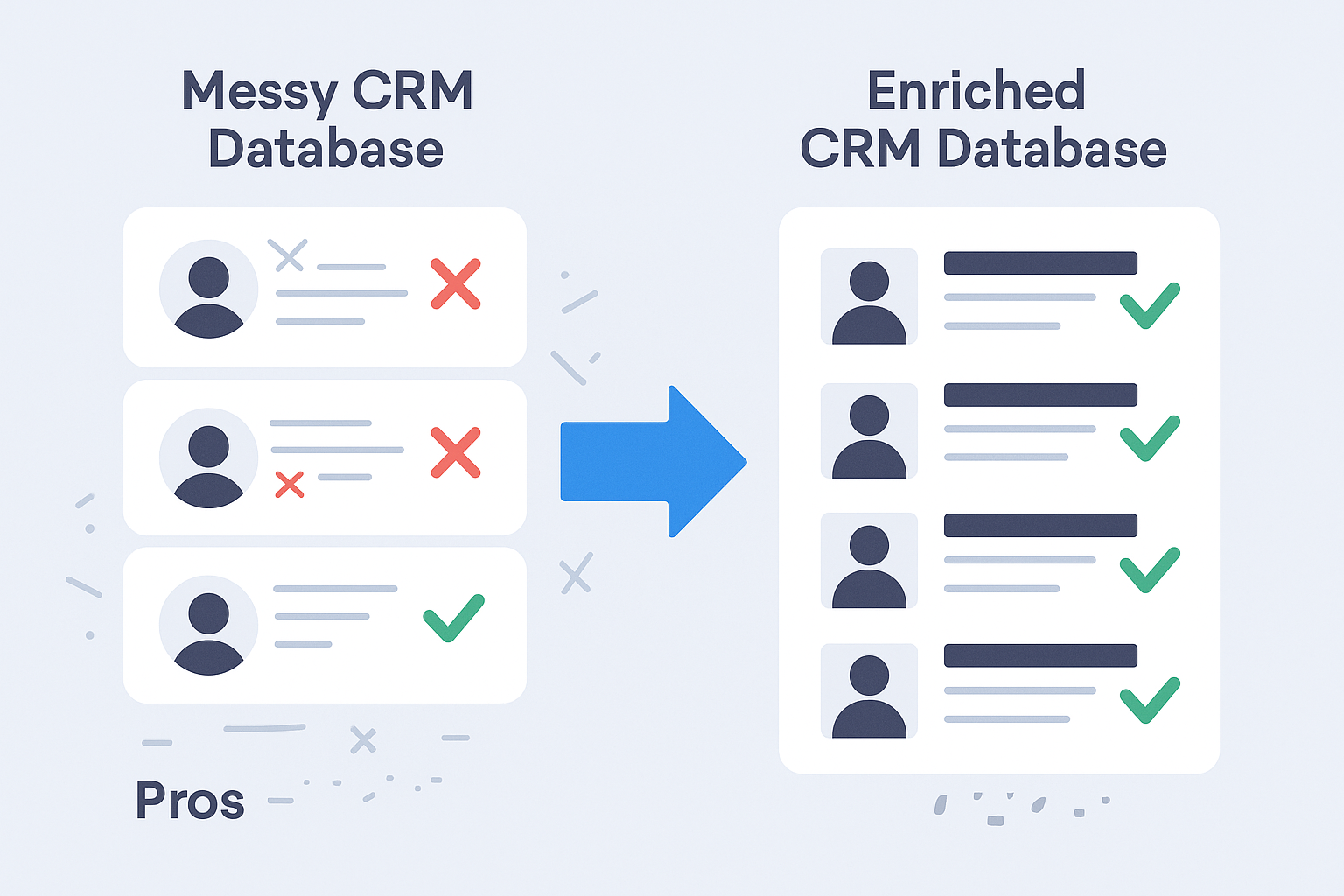 Your CRM is probably a mess. Incomplete contacts, outdated emails, and missing phone numbers are killing your commission potential. Poor data quality costs businesses up to $32,000 per sales rep annually in lost productivity.
