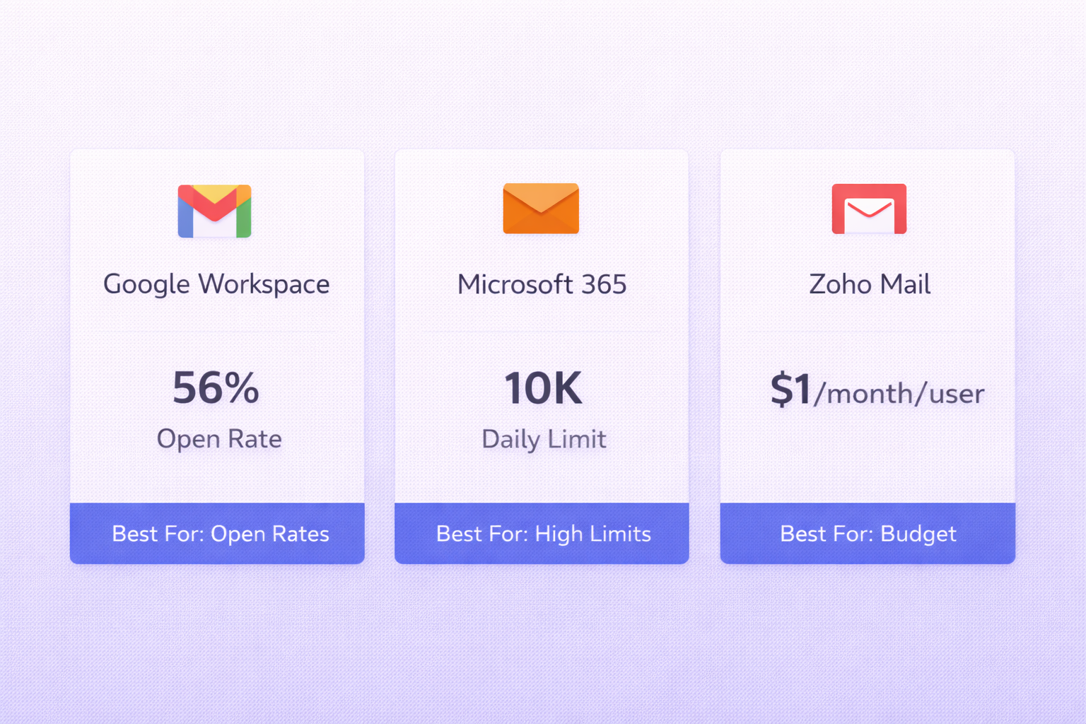 Google Workspace | All-around outreach | 2,000/inbox | 87.2% (Highest) |
