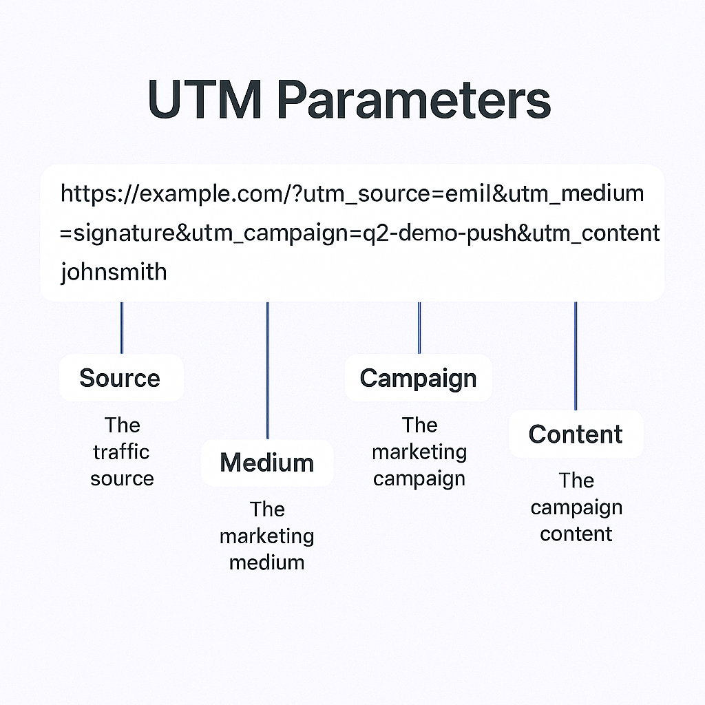 • utm_campaign=q2-demo-push (identifies specific campaign goals)