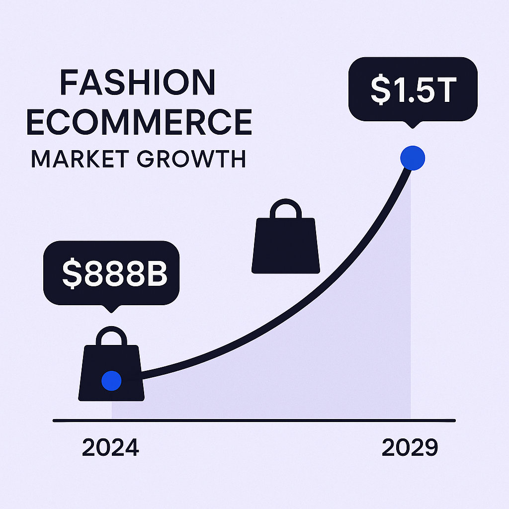 The fashion ecommerce market has grown from $888.56 billion in 2024 to $974.87 billion in 2025, with projections showing continued rapid growth through 2029.