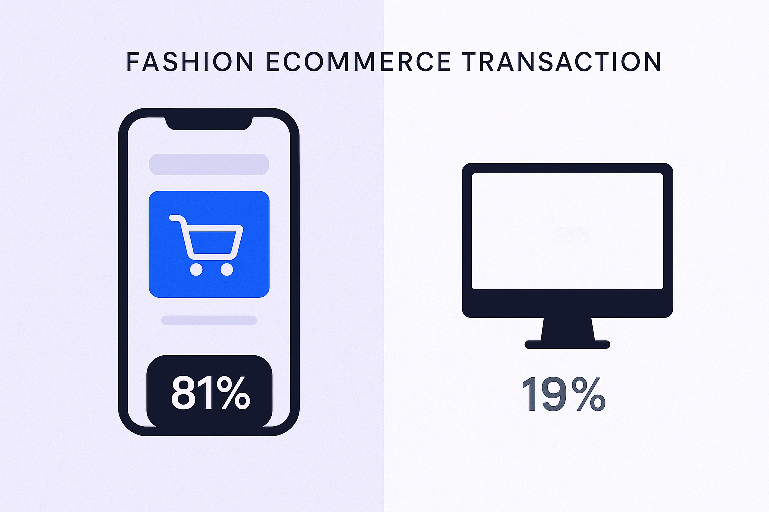 81% of eCommerce transactions take place on mobile devices, making mobile the dominant channel for fashion ecommerce purchases.