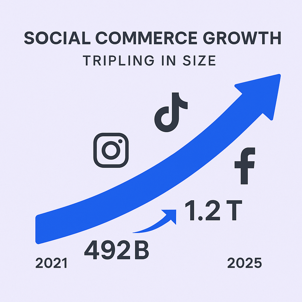 Social commerce sales are projected to triple by 2025, with global social commerce market projected to grow from $492 billion in 2021 to $1.2 trillion by 2025. Fashion leads this trend as the most popular category for social shopping.