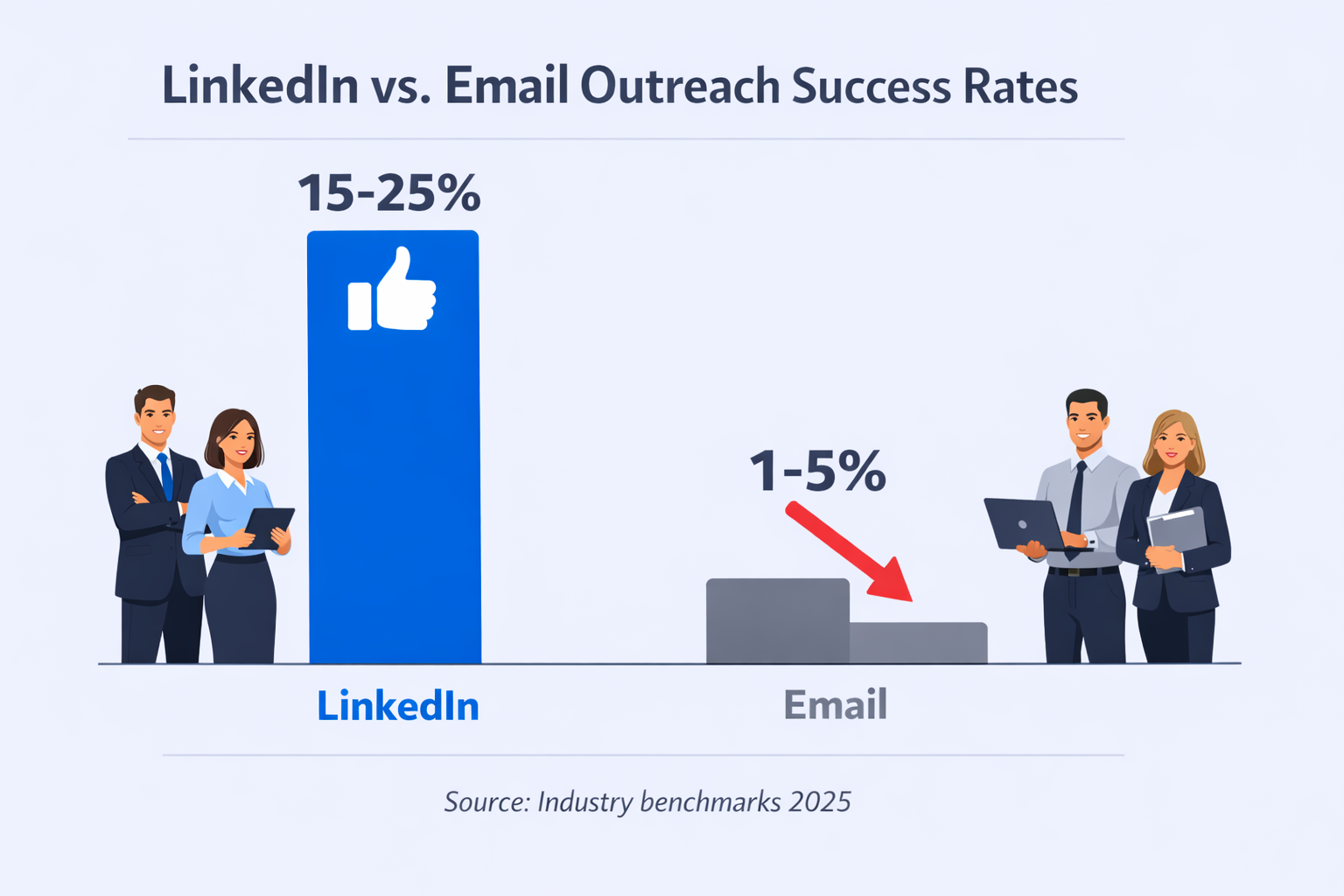Here’s what most people don’t know: LinkedIn outreach gets 15-25% response rates. Traditional cold email gets 1-5%.