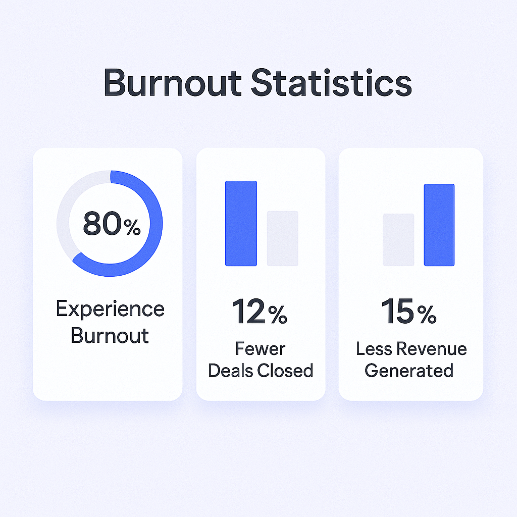The numbers don’t lie – professional burnout is reaching epidemic levels. Nearly 8 in 10 employees experience workplace burnout, with sales professionals being hit particularly hard. High-stress professionals close 12% fewer deals and generate 15% less revenue compared to their well-rested counterparts.