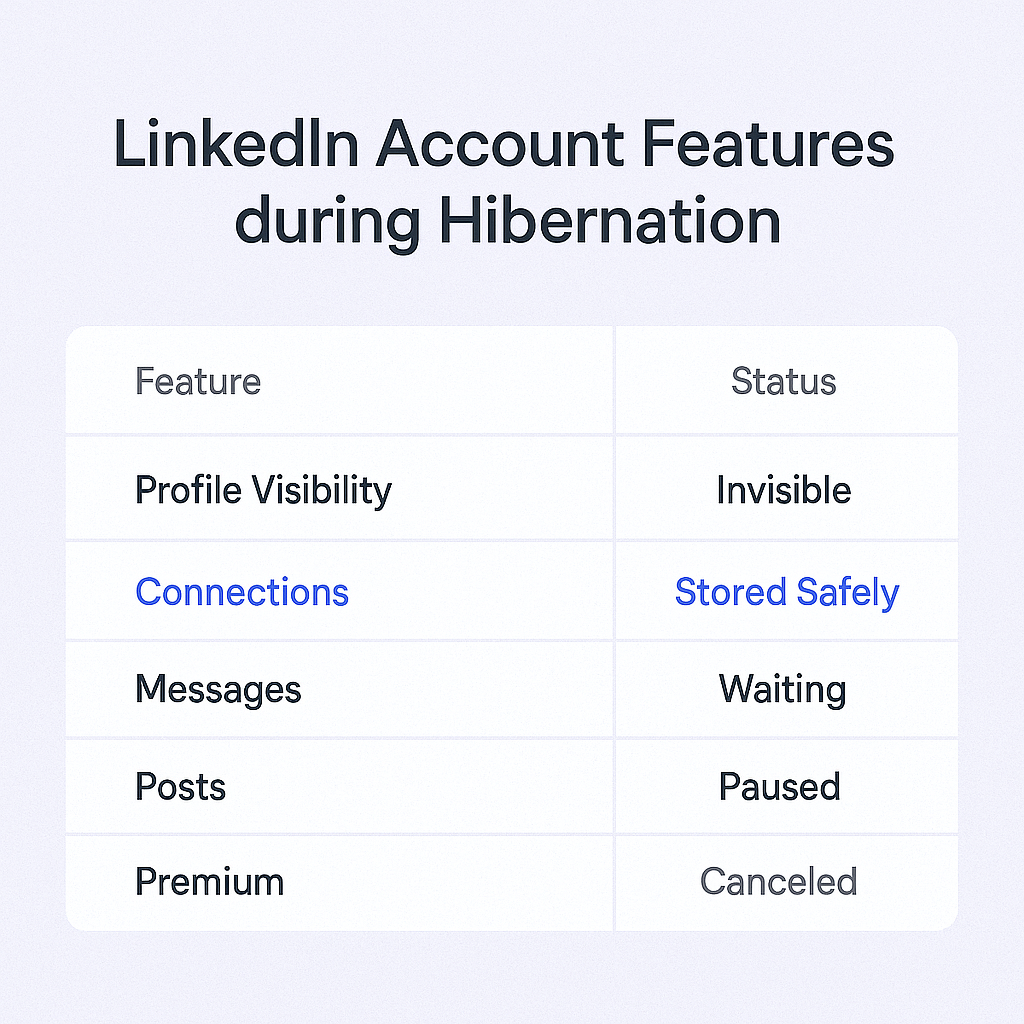 Think of hibernation as putting your linkedin account into sleep mode. Your profile becomes invisible to others, but everything stays safely stored and ready for when you return. This is completely different from account deletion, which erases everything permanently.