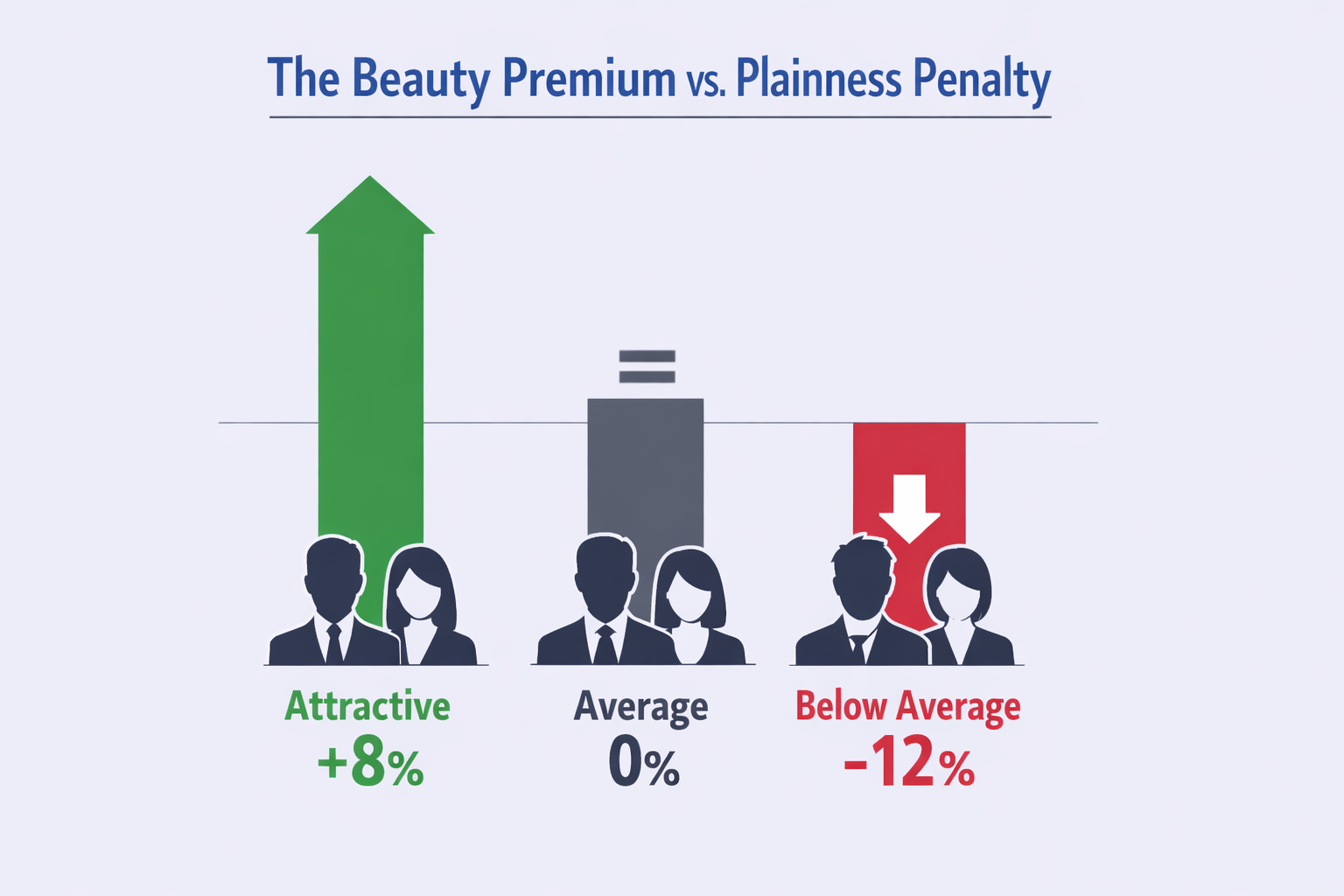 Let’s start with the most shocking stat: attractive employees earn 5-10% more than their average-looking peers. But here’s what most people miss—the penalty for being considered “unattractive” is even steeper. Those rated below average earn 9-15% less.