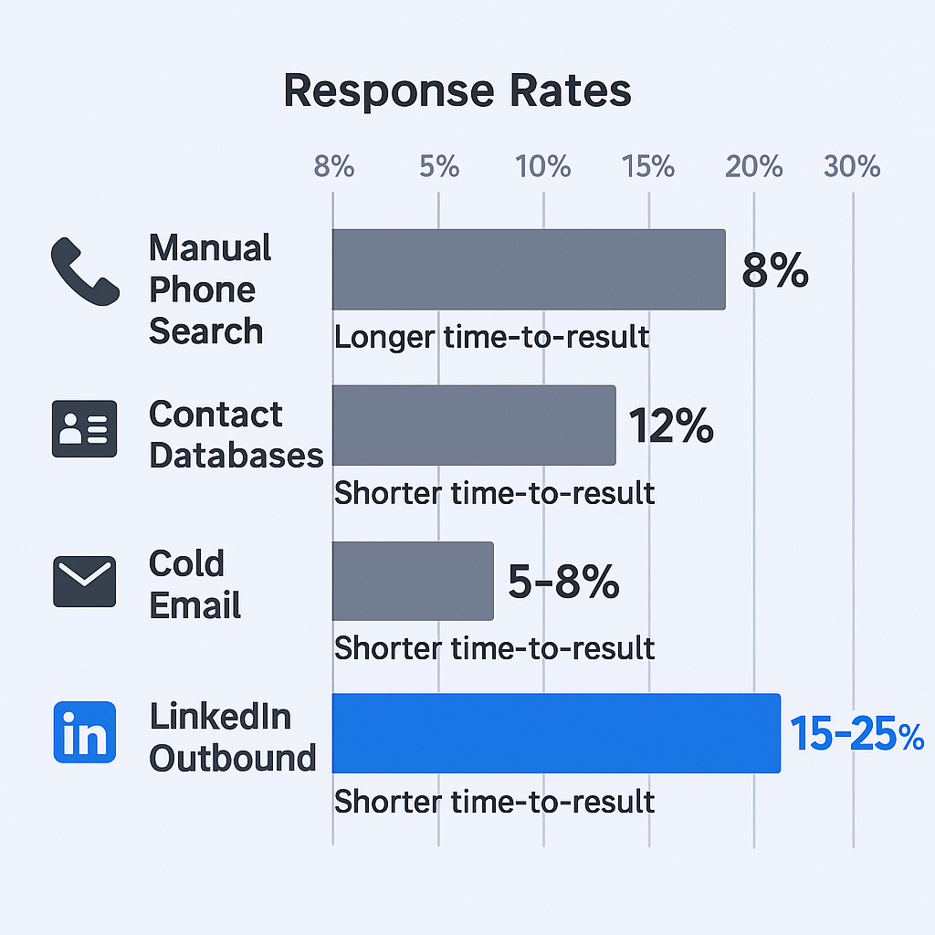 LinkedIn Outbound delivers 15-25% response rates without hunting for phone numbers
