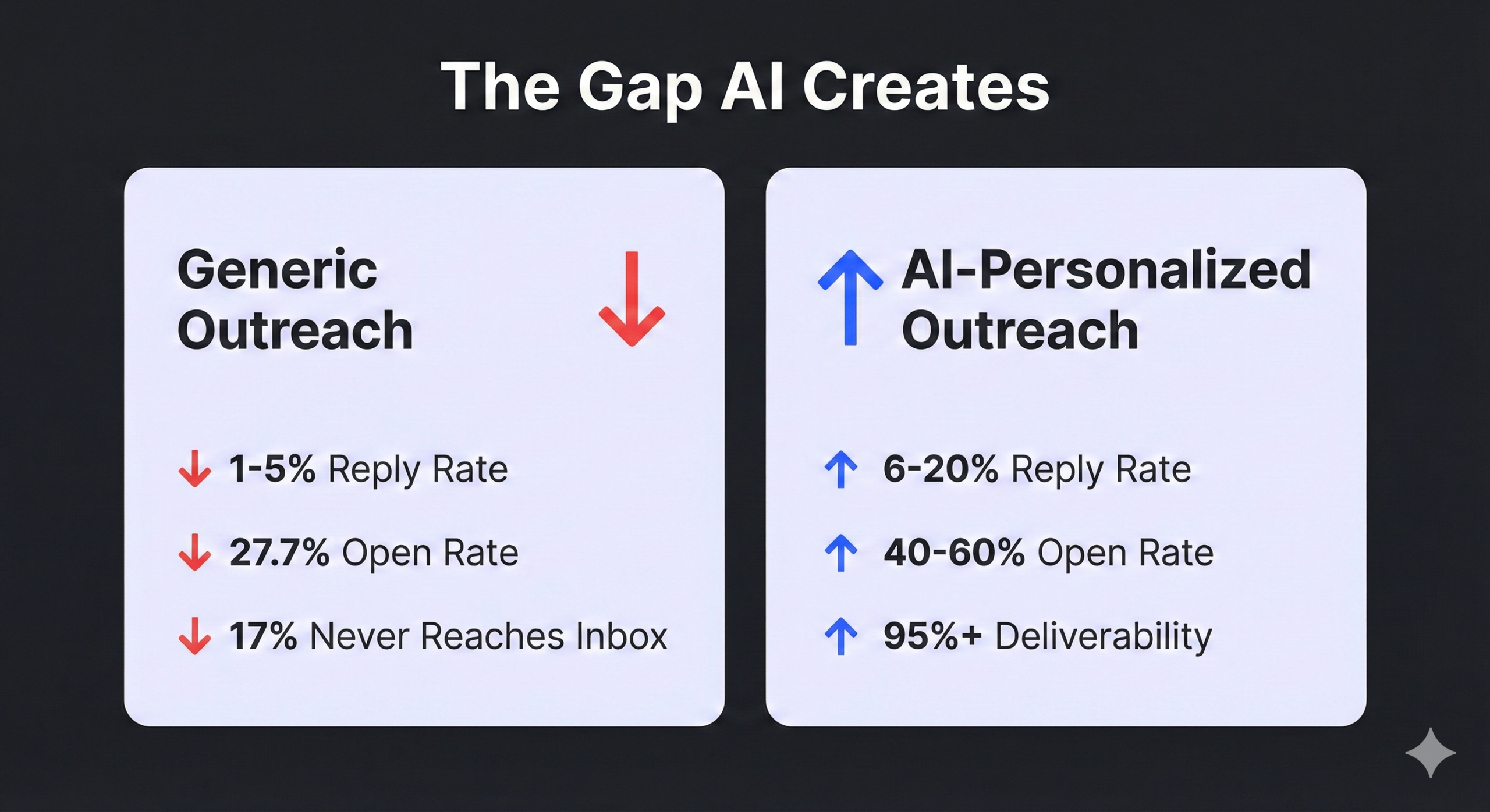 📊 Generic campaigns: 0.5–2% reply rate. AI-personalized campaigns: 6–20%+ — a nearly tenfold jump.