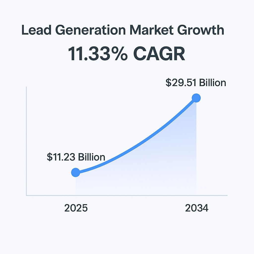 The global lead generation market is exploding. We’re looking at growth from $11.23 billion in 2025 to $29.51 billion by 2034 – that’s an 11.33% compound annual growth rate. Other projections show the market hitting $15.55 billion by 2031.