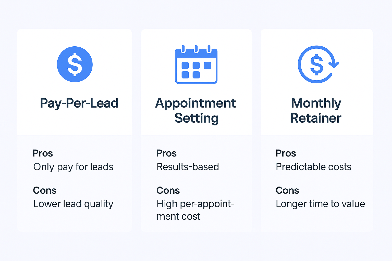 Appointment Setting: The sweet spot. You book qualified meetings directly on your client’s calendar. Clear value, easy to measure success.