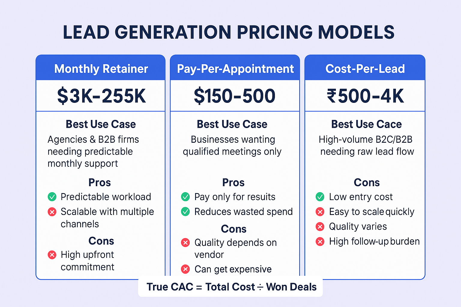 Understanding B2B lead generation pricing helps you budget effectively and evaluate ROI. Here’s what you can expect: