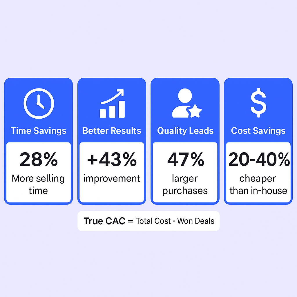 A quality lead generation partner handles the time-consuming top-of-funnel activities, freeing you to focus on demos, relationship building, and closing deals.