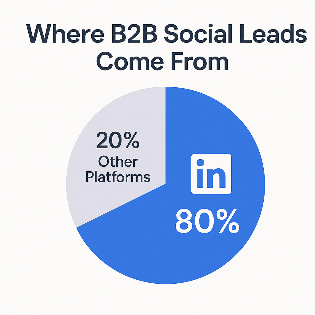 Here’s the thing: 80% of B2B leads from social media come directly from LinkedIn. That’s not a typo. While Facebook and X (Twitter) combined contribute only 20%, LinkedIn dominates the B2B lead generation space.