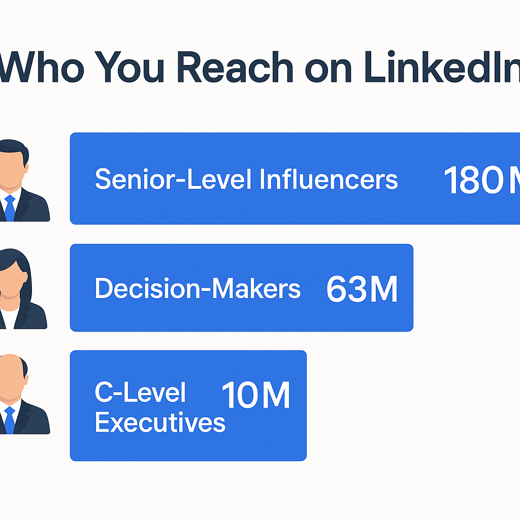 The platform hosts 63 million decision-makers, 10 million C-level executives, and 180 million senior-level influencers. That’s an incredible concentration of people who can actually sign off on purchases.