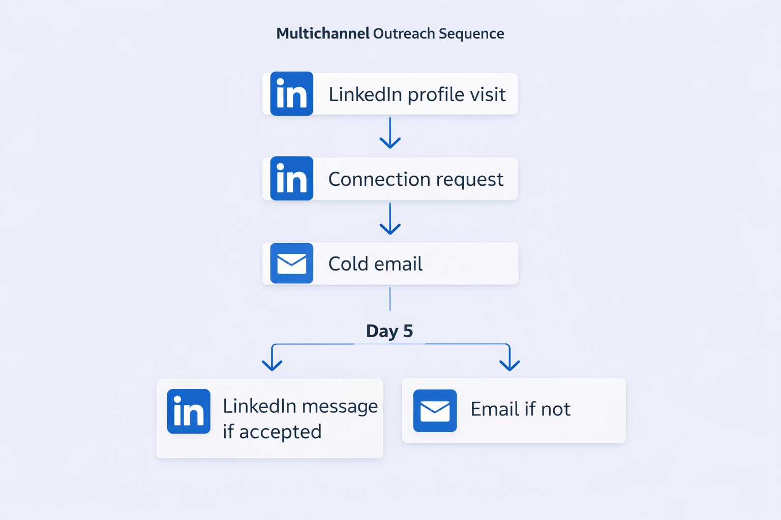 This is why modern outreach platforms integrate multiple channels. Salesso, for example, coordinates LinkedIn actions with email sequences automatically. When a prospect accepts your connection, the system triggers a personalized email. If they don’t respond on LinkedIn within 3 days, an email goes out as backup.