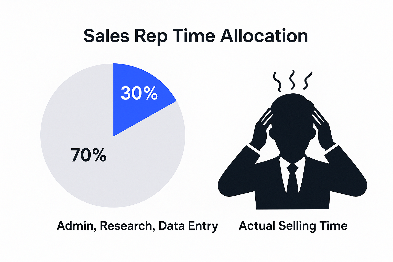 According to Salesforce, sales reps spend only 30% of their time actually selling. The other 70% is admin, research, and data entry.