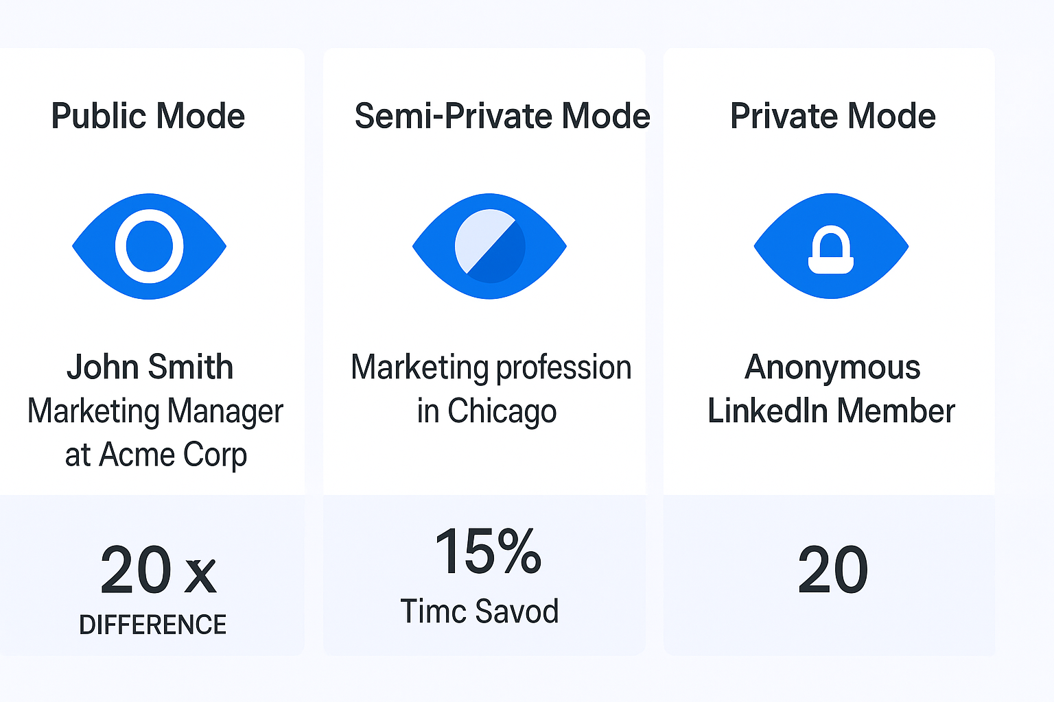 Semi-Private Mode: They see “Marketing professional in Chicago viewed your profile.” This offers minimal anonymity and often looks suspicious—like wearing a fake mustache.