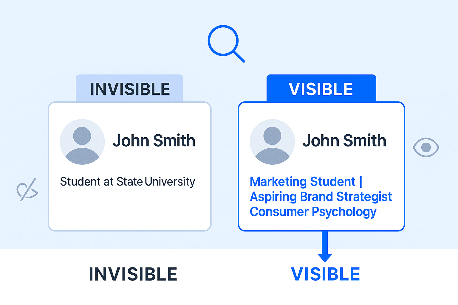 Here’s the brutal truth: recruiters aren’t searching for “Student.” They’re looking for “Marketing Enthusiast,” “Aspiring Data Analyst,” or “Future Product Manager.”