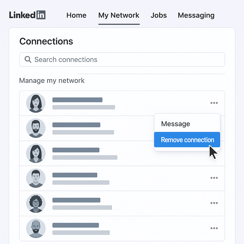 Always remove from your connections list, never from someone’s profile page. This prevents accidental “Who viewed your profile” notifications that could give away your actions.