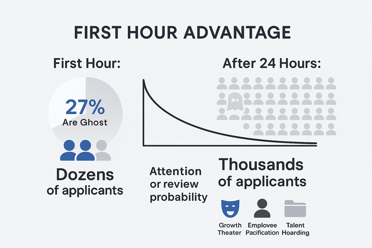 Talent Hoarding: Companies build a “warm bench” of resumes for a hypothetical future when budgets might materialize. They’re collecting candidates like baseball cards, with no immediate plans to make offers.
