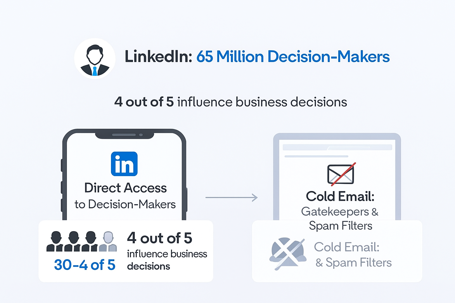 Compare that to cold email, where you’re hoping your message doesn’t get buried in someone’s spam folder. On LinkedIn, you have direct access to the exact people who can say “yes” to your offer.