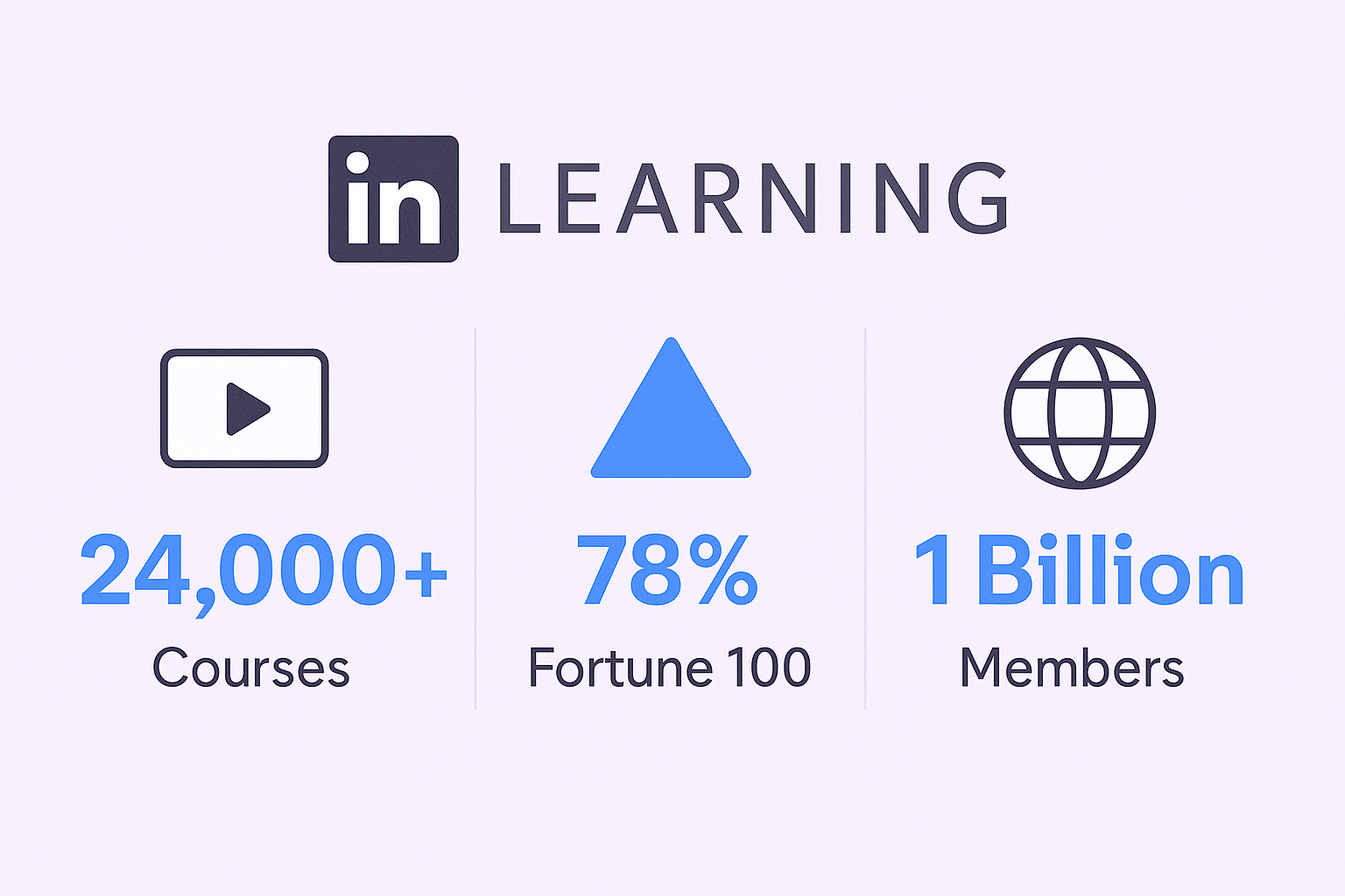 - 78% of Fortune 100 companies use LinkedIn Learning – for employee training, showing enterprise credibility