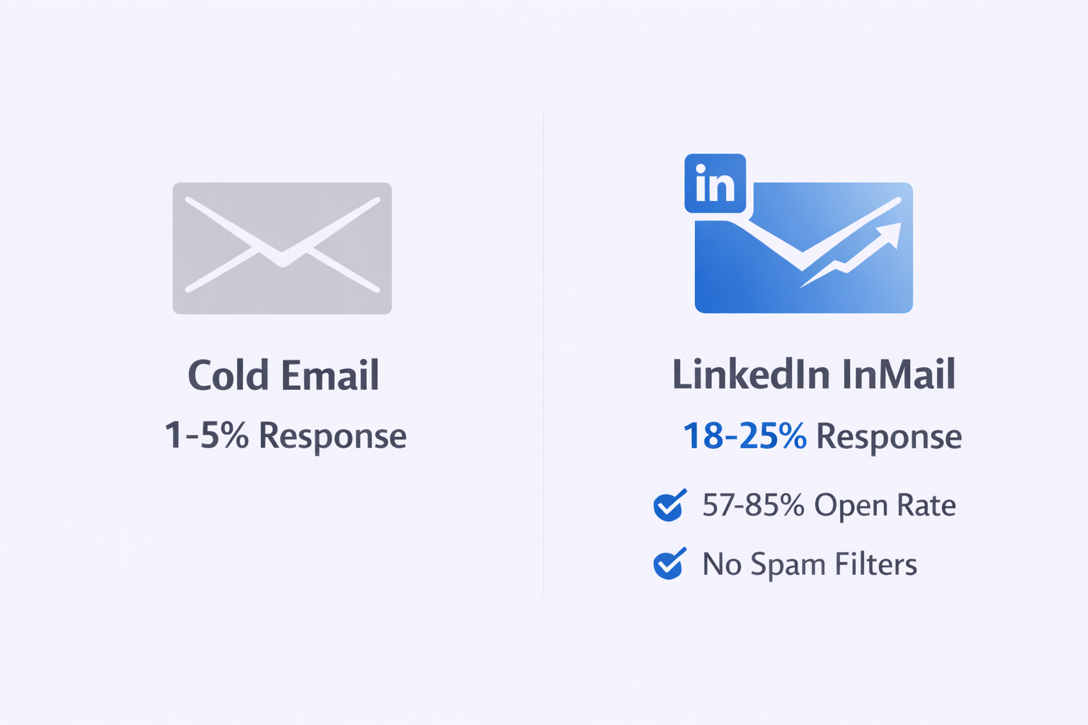 Once connected, your messaging strategy determines ROI. The contrast between InMail and traditional cold email is striking: