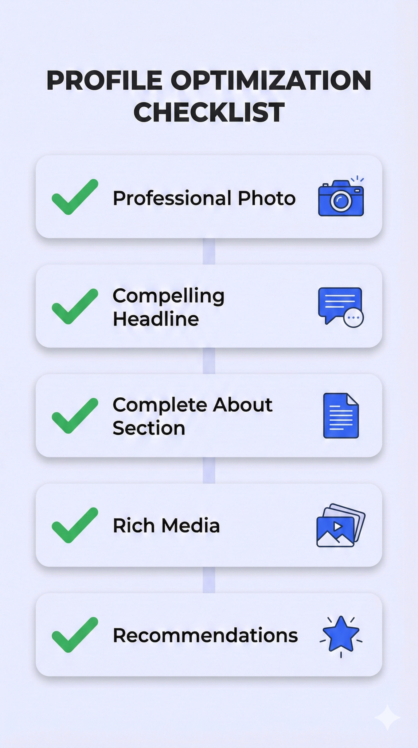 - Optimize constantly: Your profile is never “done”