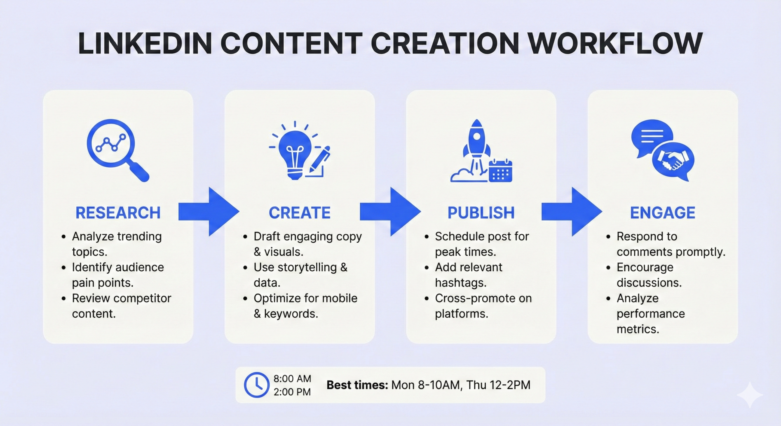 Timing isn’t everything, but it’s something. The best times to post are Monday at 8 AM and 10 AM, and Thursday at 12 PM and 2 PM. These windows align with when professionals check LinkedIn between meetings or during lunch breaks.