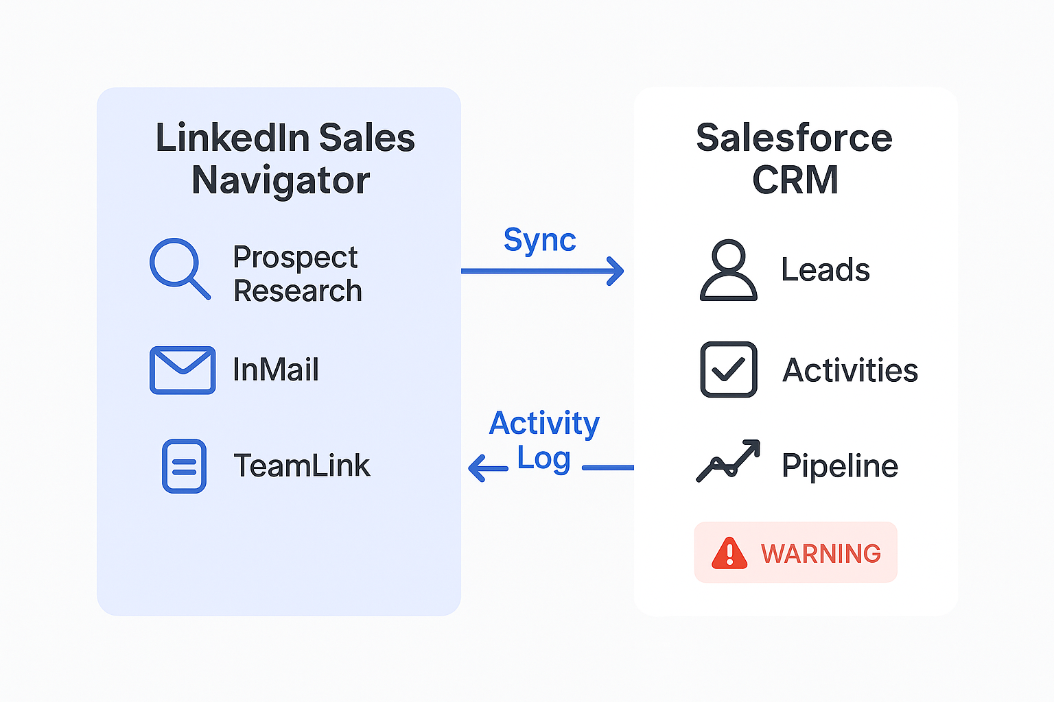 You research a prospect on LinkedIn Sales Navigator, find gold, then manually copy-paste their info into Salesforce. You send an InMail, then remember 10 minutes later to log it as a task. By the end of the week, your CRM looks like Swiss cheese—full of holes.