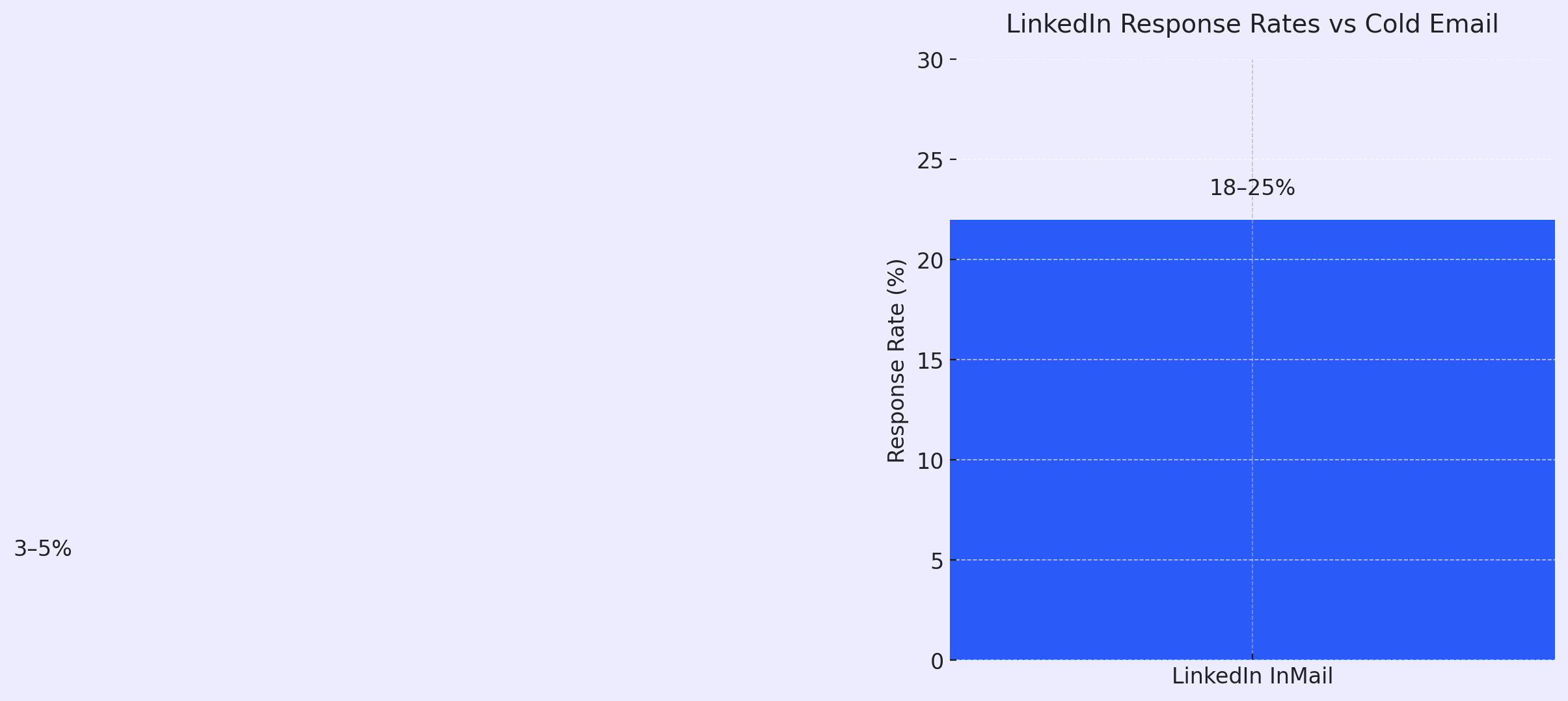 InMail averages 18-25% response rates in high-performing campaigns. Meanwhile, cold email sits at 3-5% generally (though personalized campaigns can hit 12-15%).