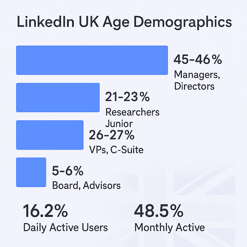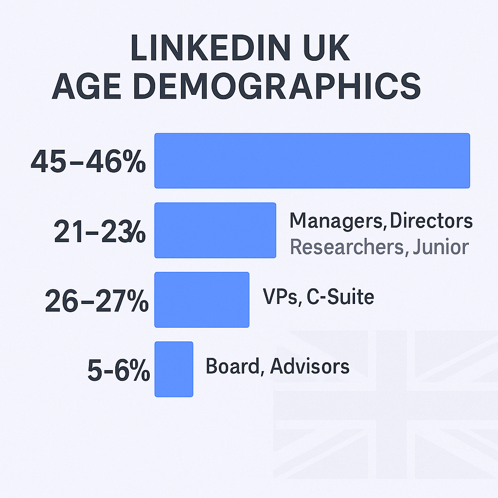 4 out of 5 LinkedIn members globally drive business decisions. The UK market, with its heavy service-sector orientation and concentration of corporate headquarters in London, reflects this pattern strongly.