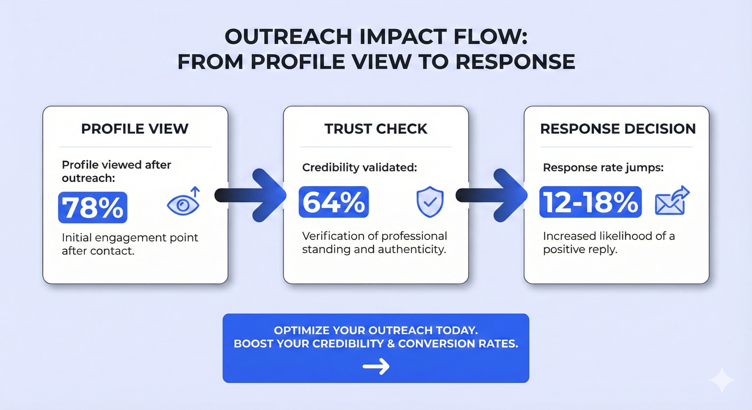 - Cold outreach without profile engagement: 2-4% response rate – baseline performance without the trust-building advantage of profile visibility