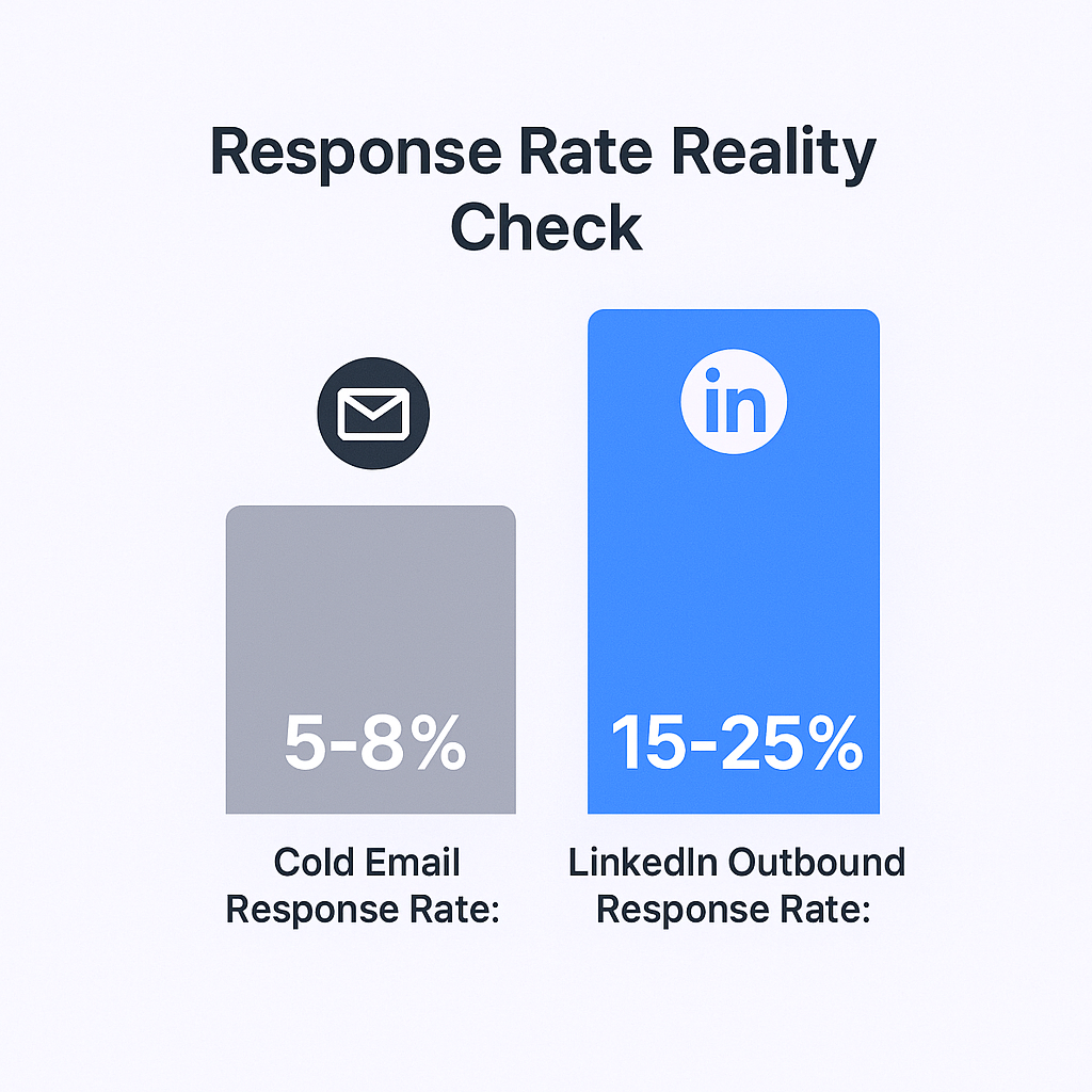 LinkedIn outbound delivers 15-25% response rates while your cold emails fight for inbox placement