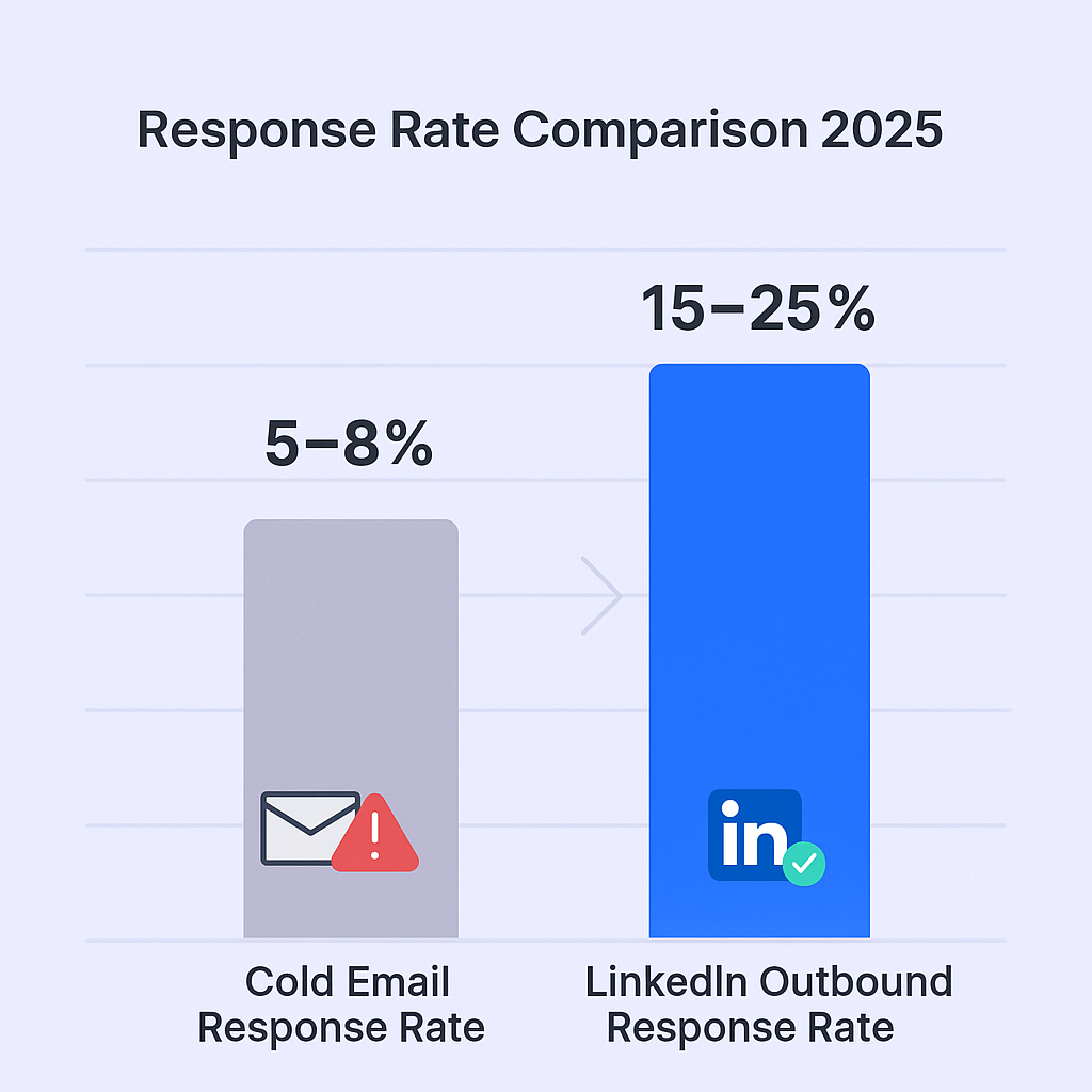 Our LinkedIn outbound engine delivers 15-25% response rates without warmup, SPF, or inbox placement anxiety