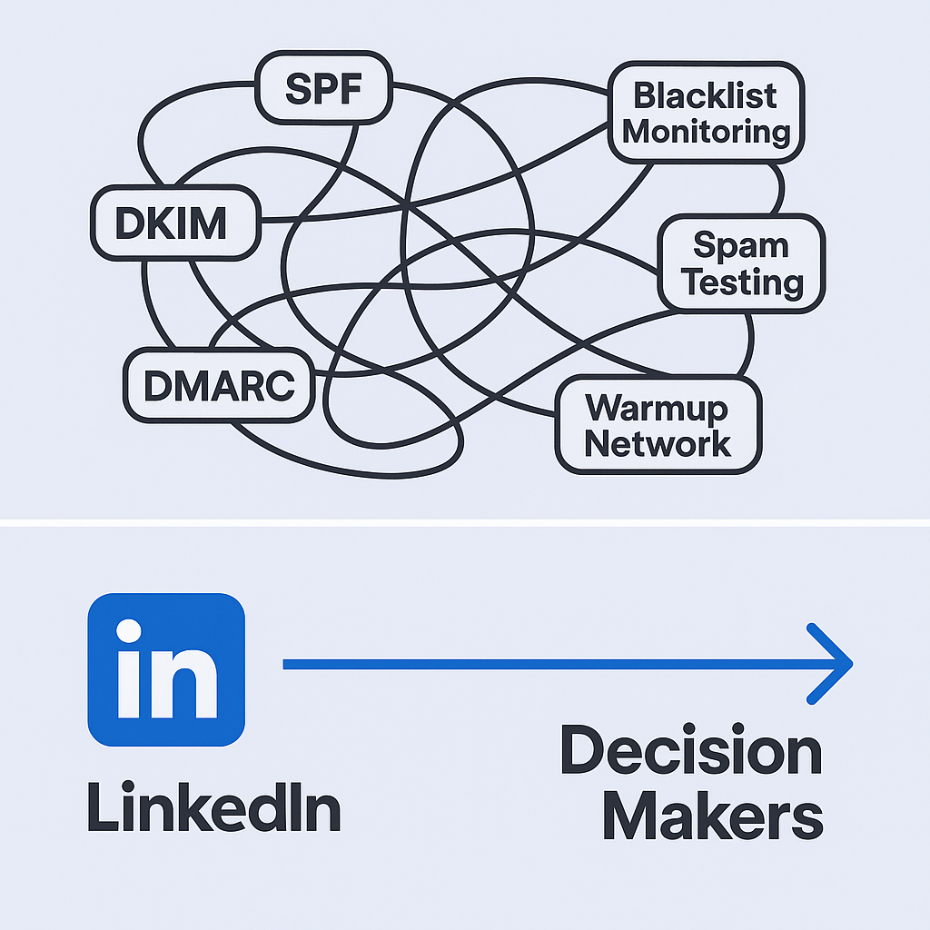 LinkedIn outbound reaches verified decision-makers directly—no blacklists, no authentication records, no deliverability monitoring required