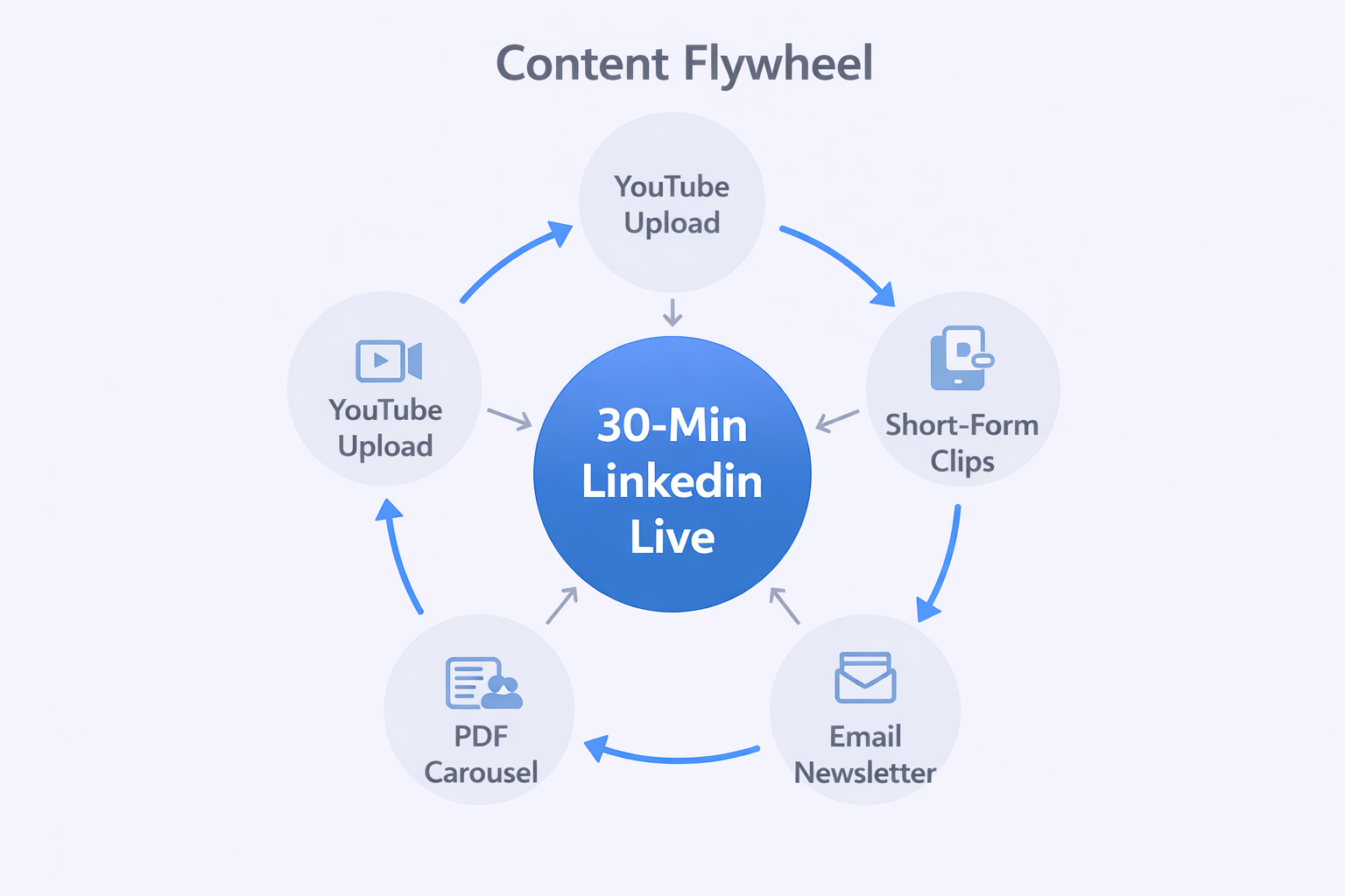 Extract short clips using OpusClip or similar tools. These vertical videos go to LinkedIn (as regular posts), TikTok, Instagram Reels, and YouTube Shorts. Each clip extends your reach to people who missed the live stream.