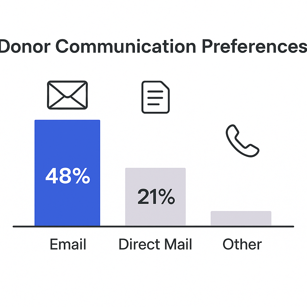 Here’s the game-changer: 48% of donors actively choose email as their preferred communication method. This preference rate is more than double the next closest channel, direct mail at 21%.
