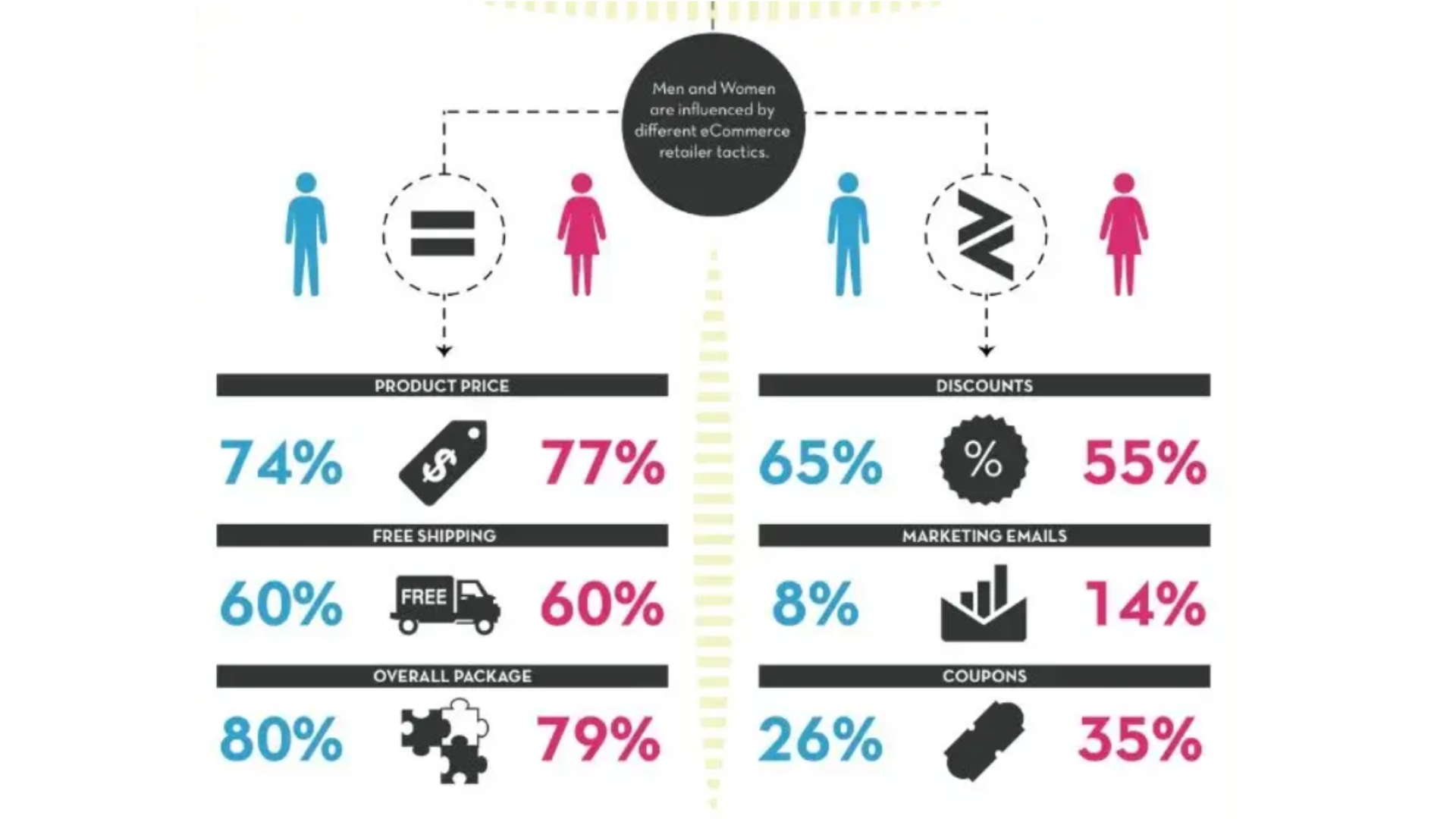 • 75% of female shoppers prefer to use mobile devices to make purchases compared to 63% of men